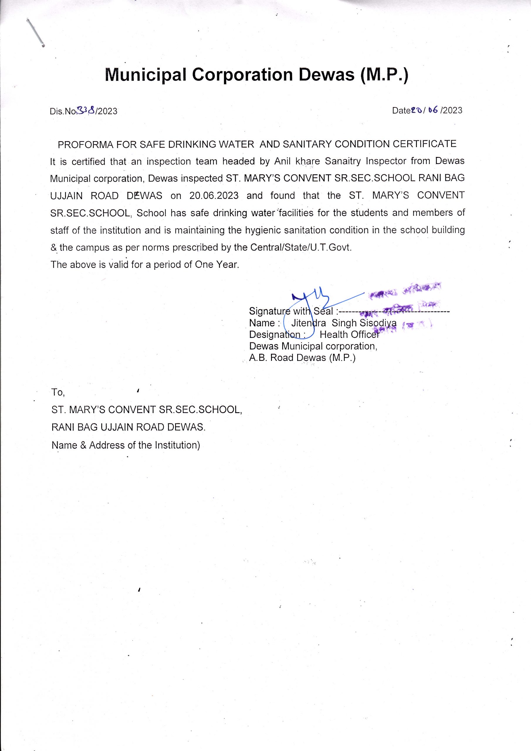 | 8 | COPIES OF VALID WATER, HEALTH AND SANITATION CERTIFICATES | VIEW |